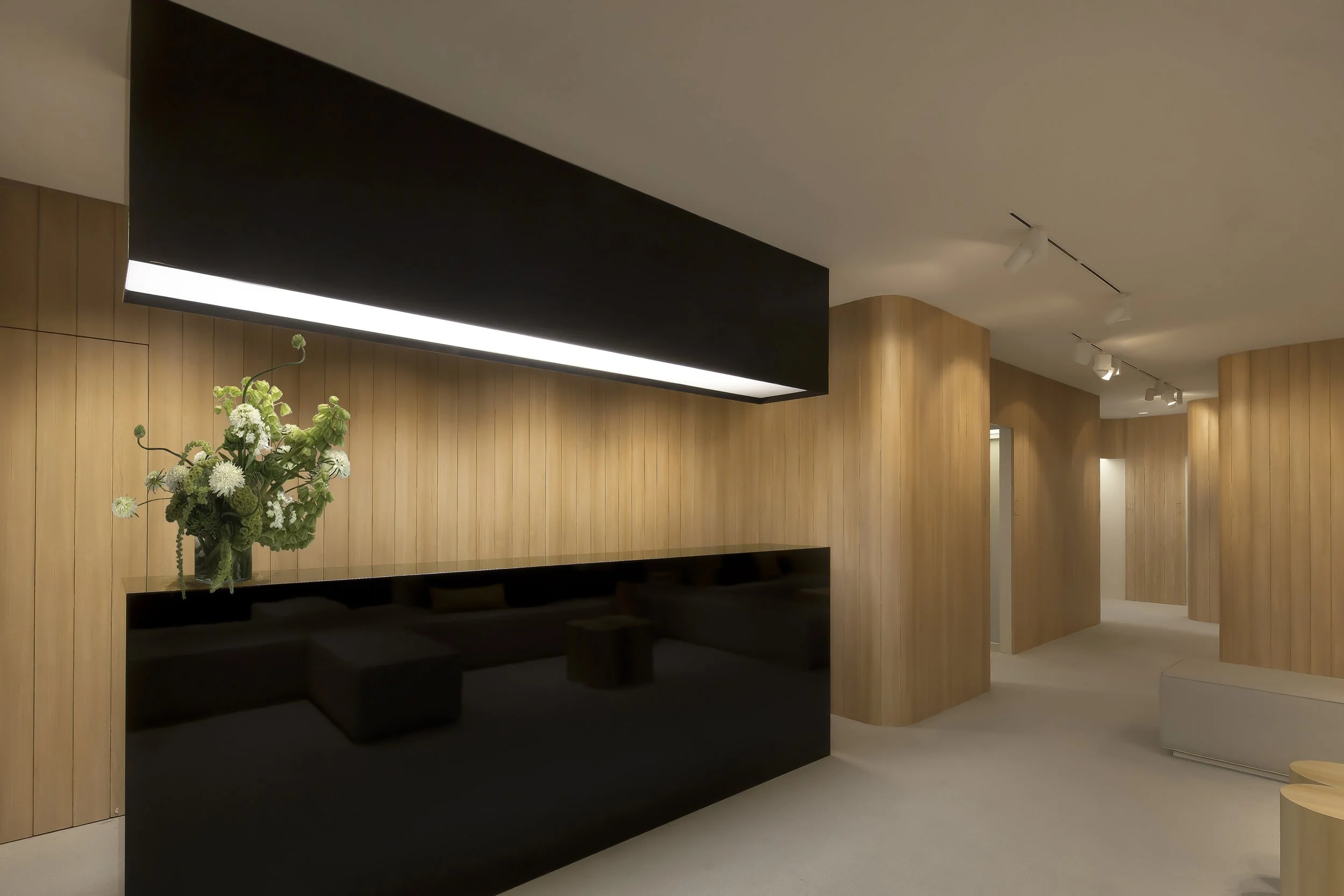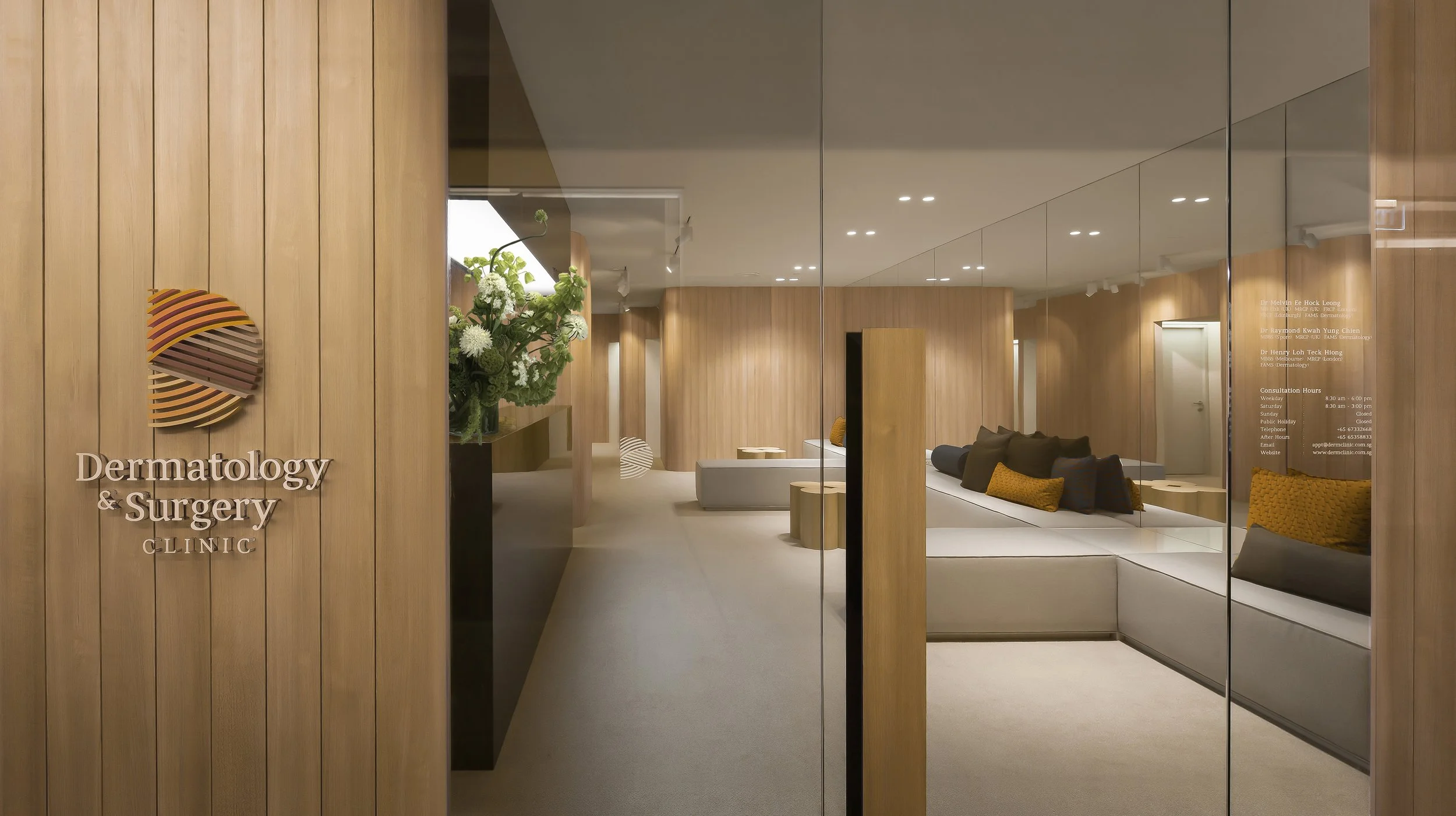 Located within Paragon Medical along Orchard Road, this dermatology and aesthetic clinic is conceived around the metaphor of skin—an elegant, protective layer that conceals and reveals. The design draws on this sensuous quality to shape both space and experience, wrapping the clinic’s functions while maintaining an atmosphere of warmth and hospitality. Carefully considered sightlines ensure privacy, allowing consult rooms to feel discreet even with doors ajar, preserving the client’s comfort at every stage of their visit. Within a compact footprint, spaces are planned with simplicity and clarity, reducing visual clutter while enhancing flow. Materiality and lighting are chosen to evoke calmness and trust, balancing clinical precision with the reassurance of human touch. The result is a sanctuary in the heart of Orchard Road: a refined, intimate environment that upholds professionalism while offering patients a sense of ease, care, and personal attention.