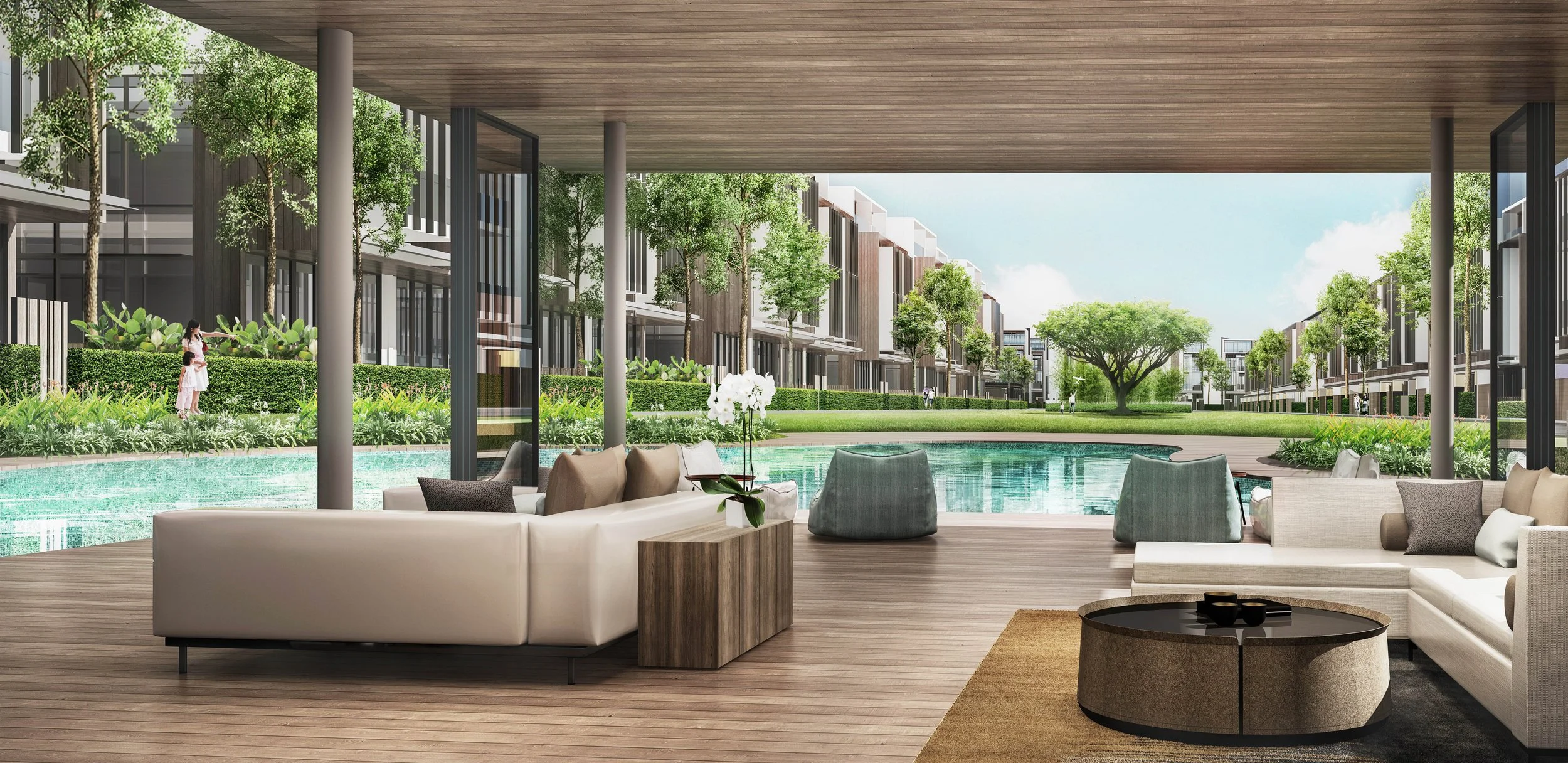 The development features a carefully curated mix of terrace, semi-detached, and detached houses, offering a diversity of living options while maintaining a cohesive architectural language. At the heart of the community lies a generous central green space, designed as the social and recreational core. A clubhouse with swimming pool, gym, and landscaped gardens provides residents with opportunities for wellness, leisure, and interaction. This focal point fosters a sense of belonging, bringing neighbours together while preserving the intimacy of private, landed living.