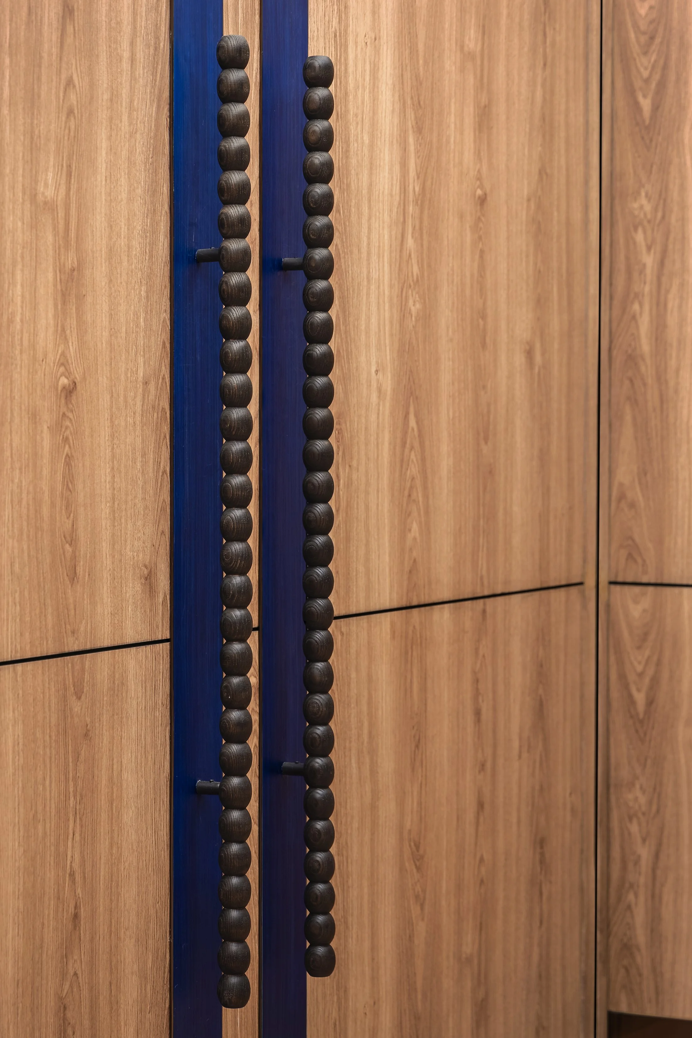 A fibre optic stream was added, offering a modern interpretation to the traditional chandelier that would have crowded the space while reinforcing the overall simplicity and fluidity. A celebratory element is introduced through the carpet, which features vibrant firework motifs. This injects energy and festivity into the space, while paying homage to the otherwise restrained interior palette.