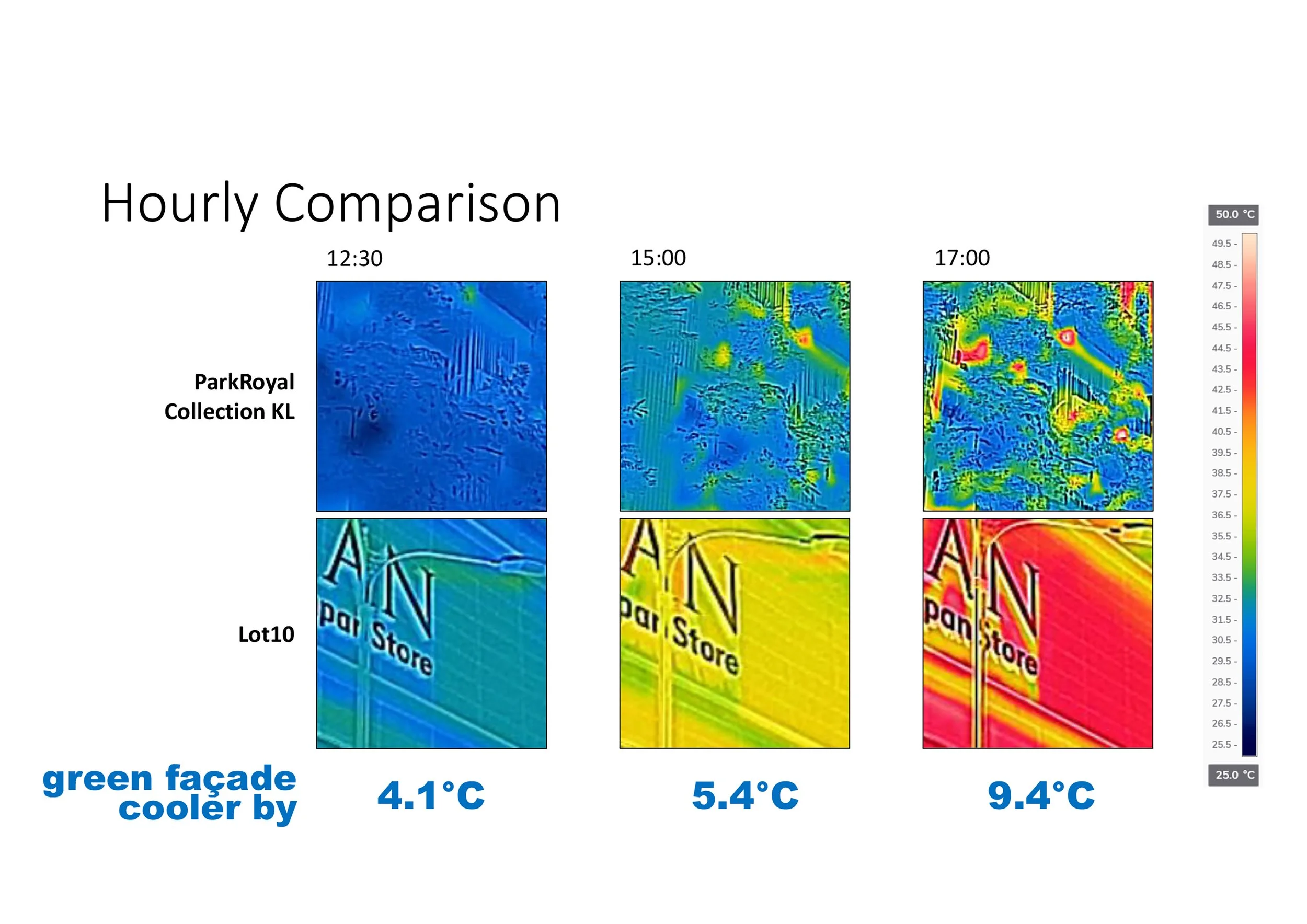 A wide variety of tropical trees and shrubs is selected, moving away from mono-culture by curating a natural palette of plants. Plants mostly native to Malaysia are selected for hardiness, reduced maintenance, and increased pest & disease resistance as opposed to purely decorative species. The foliage is layered and attractive in a natural manner, and shade hard concrete surfaces, preventing reflected heat and the urban heat island effect. Combined with undulating perforated screens, sunlight does not fall directly onto the guestroom façade surfaces, preventing heat from being transmitted directly into the interiors and reducing energy costs to cool internal rooms.