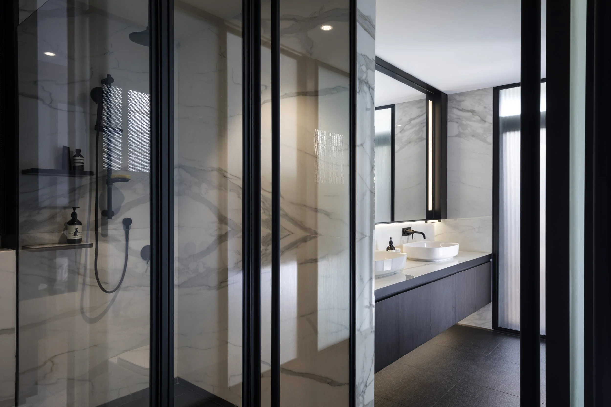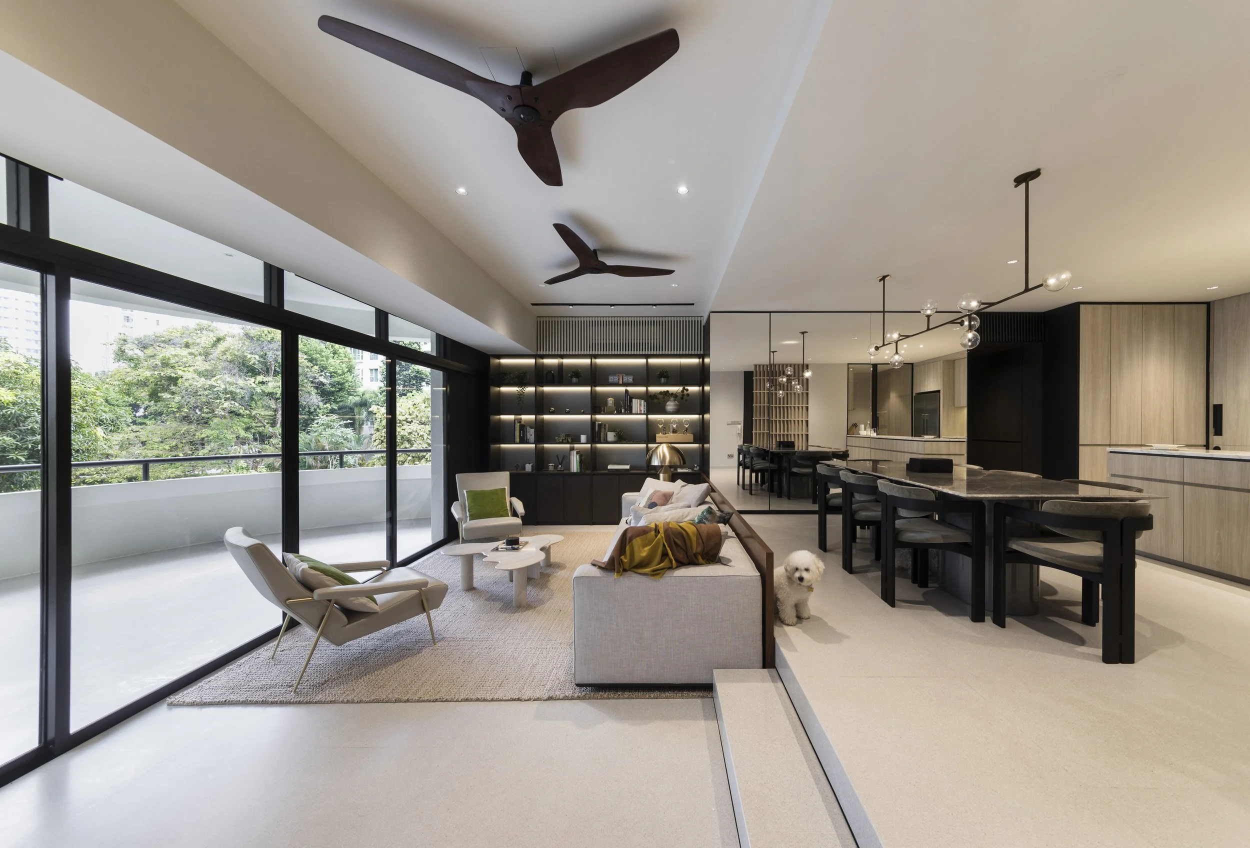 The kitchen and service areas were restructured - a new dry kitchen was carved out as a refined front-of-house element, seamlessly integrated with the dining and living spaces for entertaining and daily use. This reallocation freed up space to enlarge the wet kitchen and yard, greatly improving functionality. The result is a home that balances openness with intimacy, grand yet warm and tasteful, functional with thoughtful spatial design — a renewed home that better reflects contemporary lifestyle and living needs.