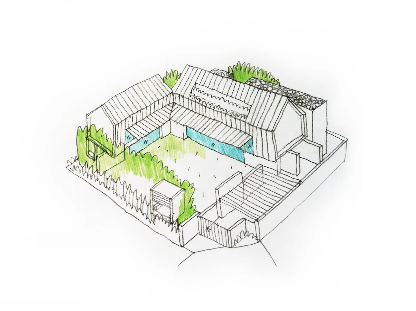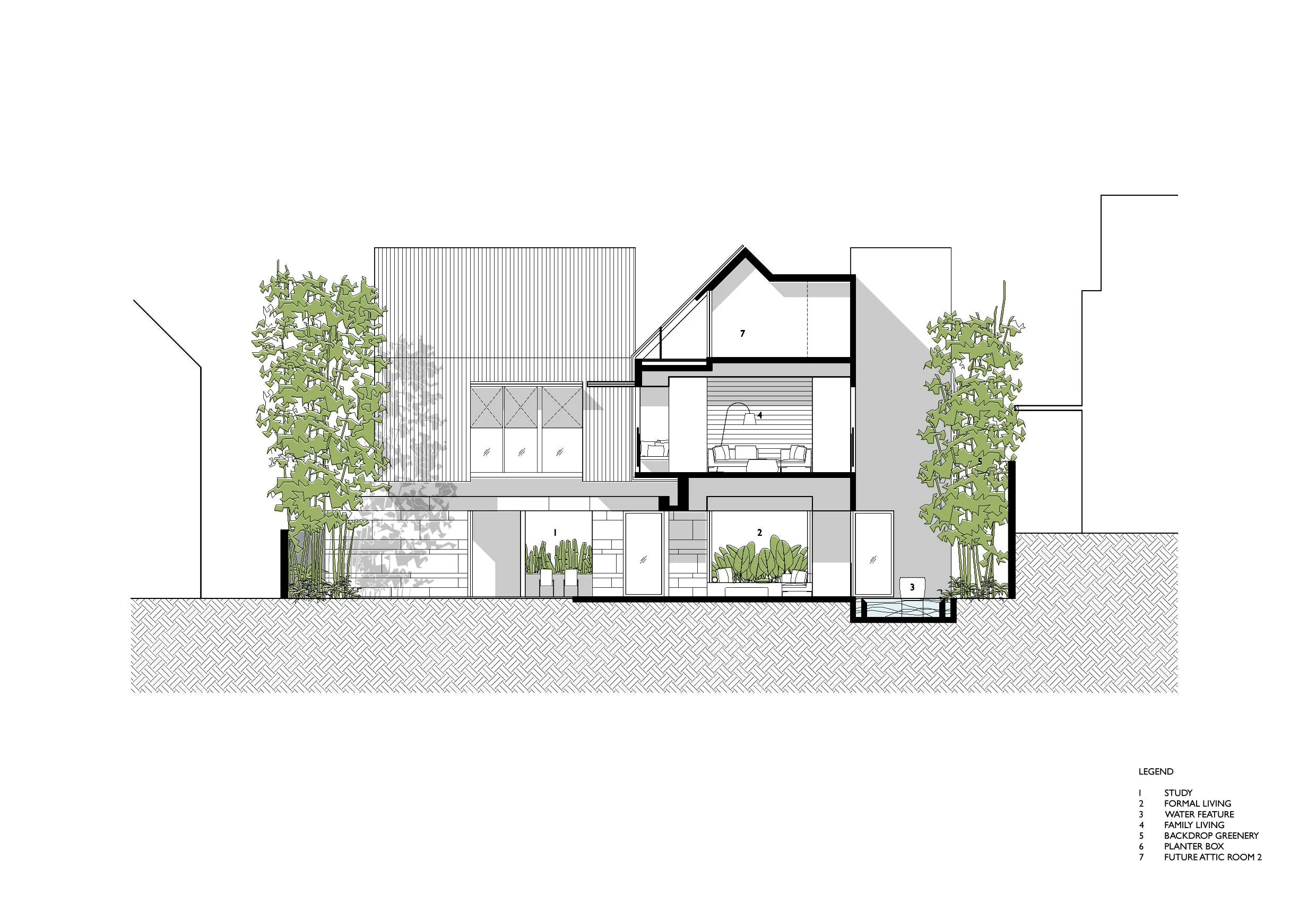 The Screen House is a home for a multi-generational family with young children, located within a dense residential neighbourhood. Despite the compact footprint, the design carves out substantial green spaces to create a garden home atmosphere. The residential wings are arranged around a large lawn where the children can enjoy pitching tents, playing with lanterns and running around, while the rest of the family relaxes in other various living spaces.