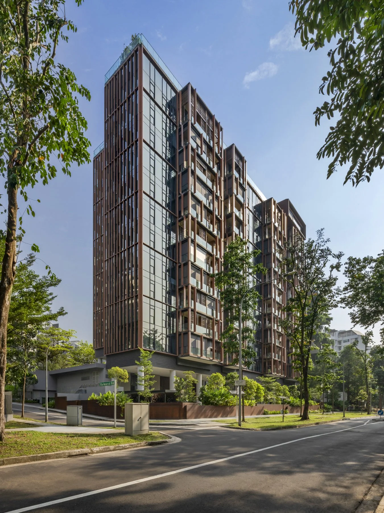The apartments are elevated high off ground for commanding panoramic views of Goodwood Hill. This allows almost the entirety of the site to be freed up for greenery and common facilities. Amenities are nestled amidst nature, envisioned as bold but simple forms that reimagine convention and coalesce architecture, art and landscape.