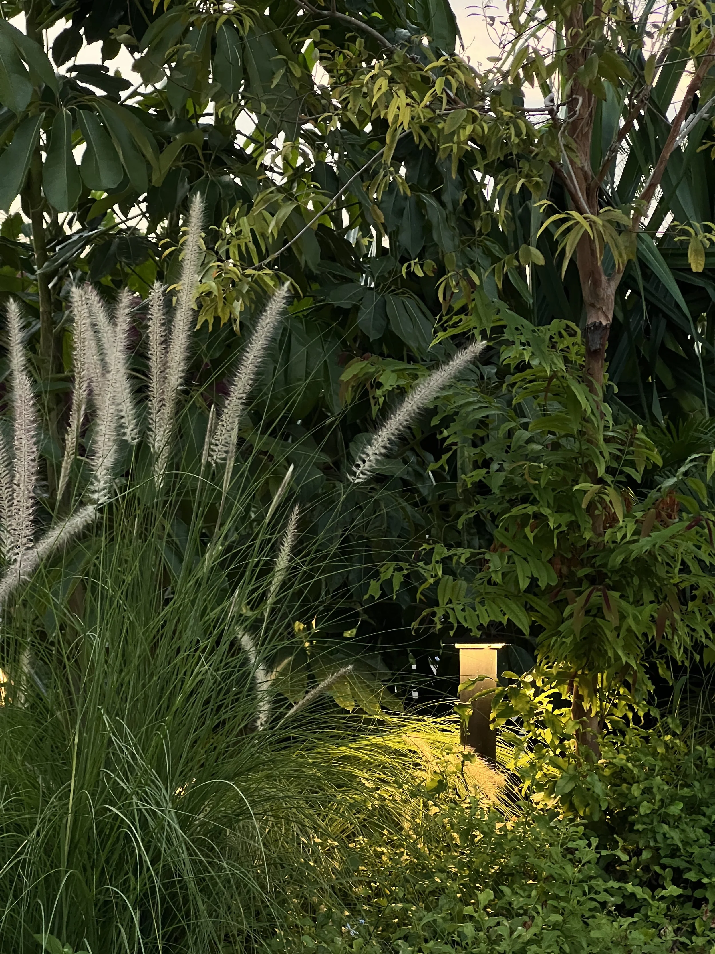 As one meanders along the pool, the view is gently guided toward these sculptural trees, inviting moments of pause and appreciation for the tranquil pockets of space nestled within the lush planting.